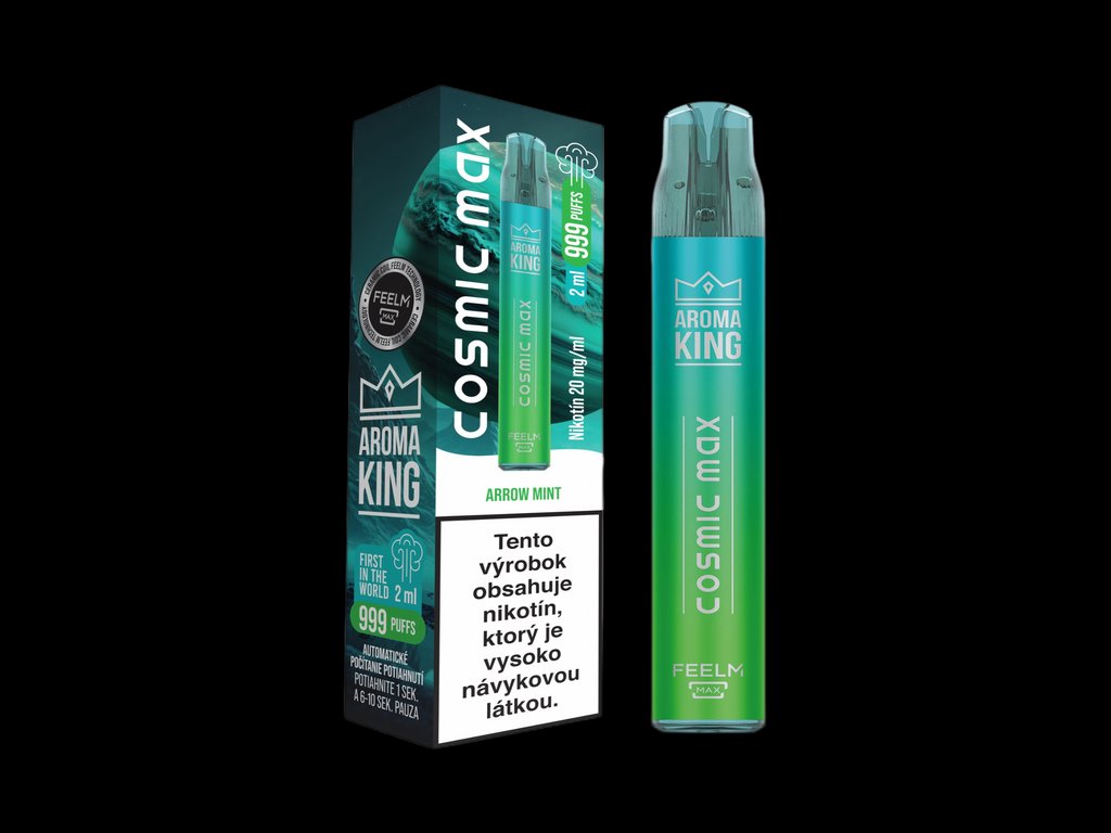 Jednorazová elektronická cigareta Aroma King Cosmic Max od poľskej značky Aroma King, predplnená 2 ml e-liquidom najvyššej kvality na báze nikotínovej soli s obsahom nikotínu 20...